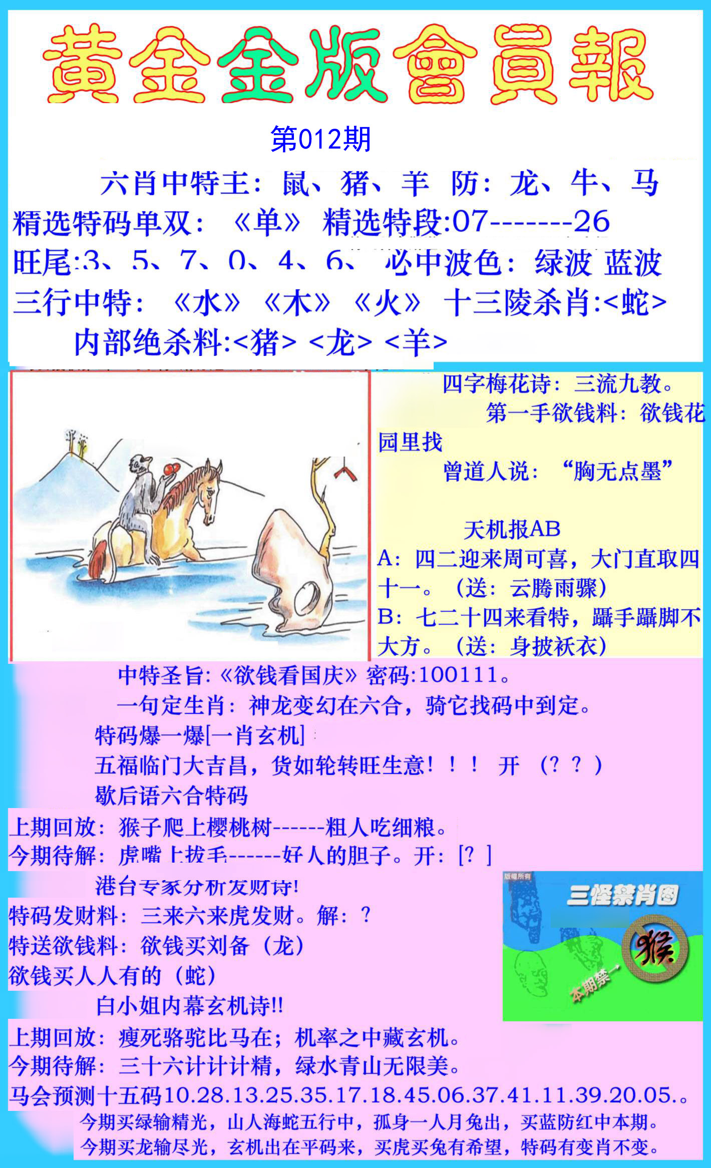 010期必中⑤肖: 蛇兔鸡羊狗 |