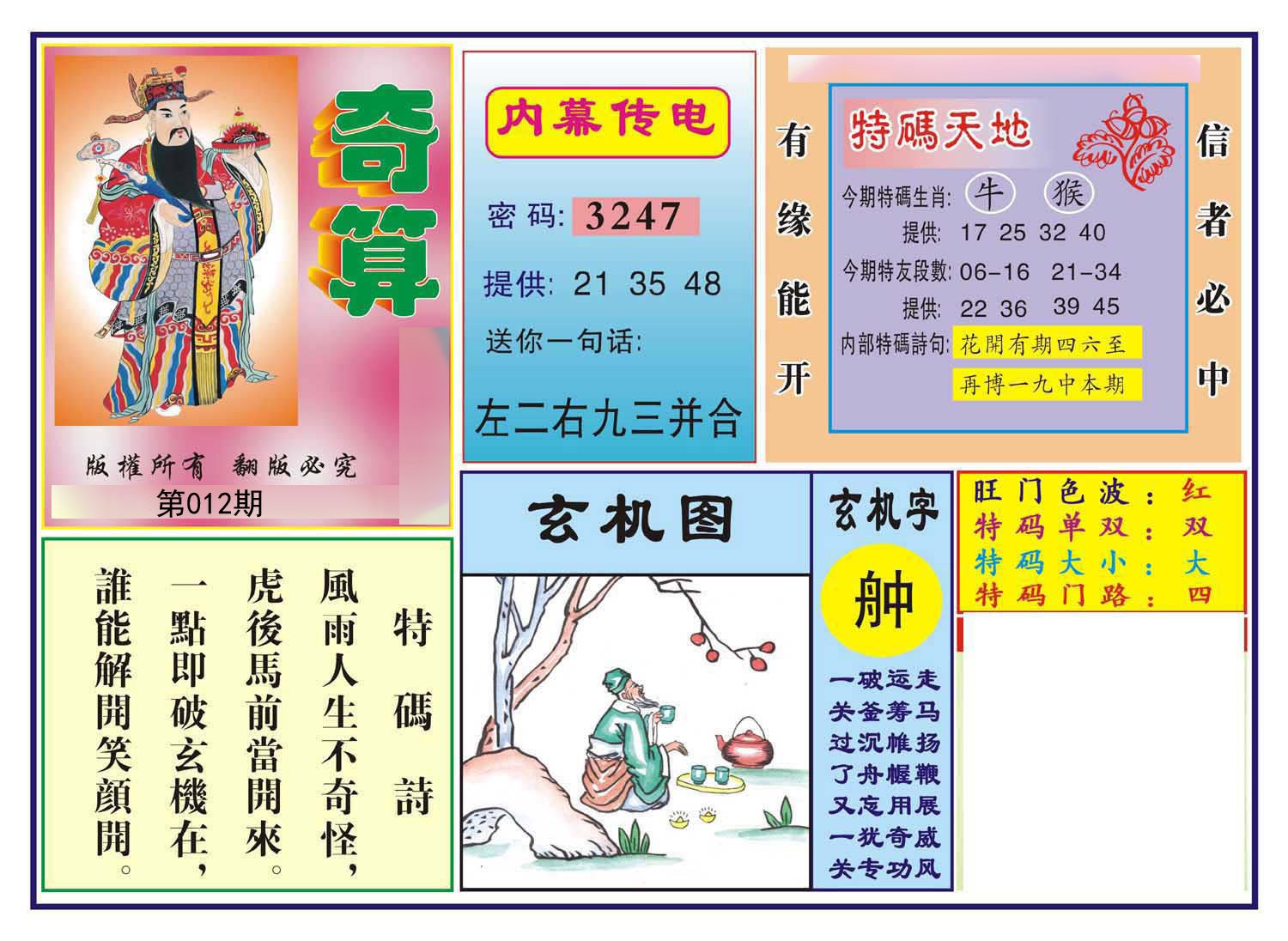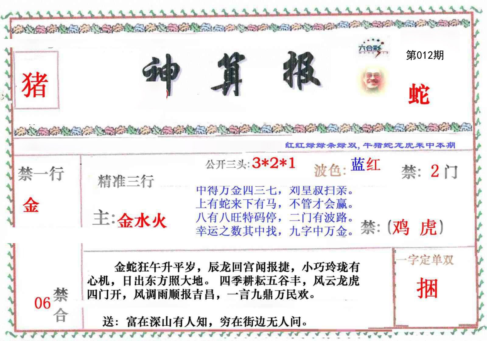 012期单双中特【家禽+羊猪虎狗】?00 |