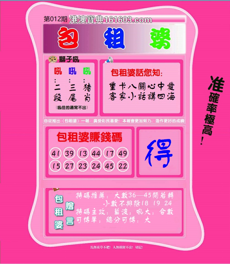 006期必中⑤肖: 虎羊狗兔鼠 |