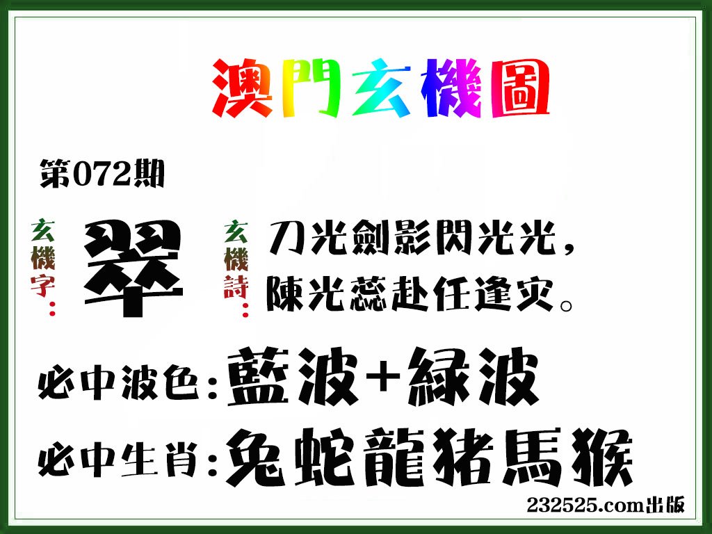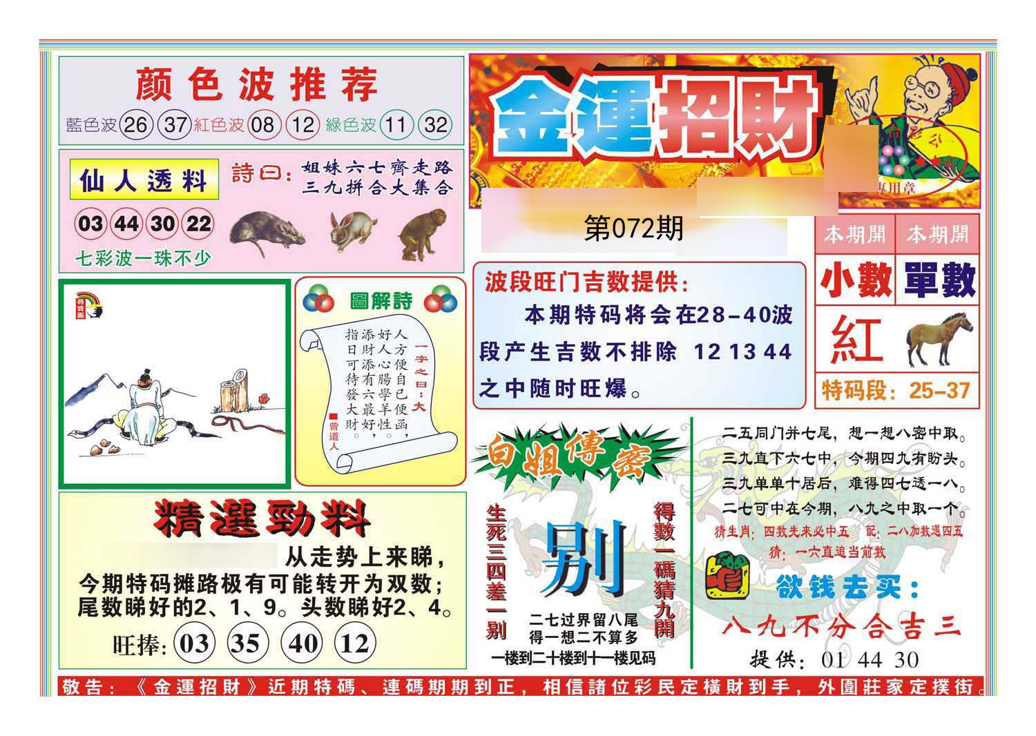 第072期绝杀半波【绿双】开?00准 |