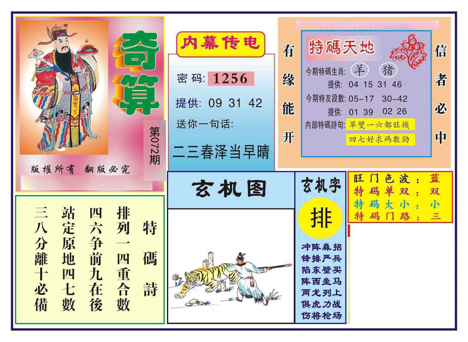 | 072期必中②肖: 羊龙 |