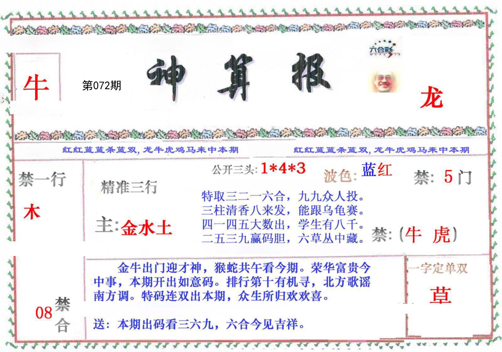 | 072期必中⑤码: 羊 |