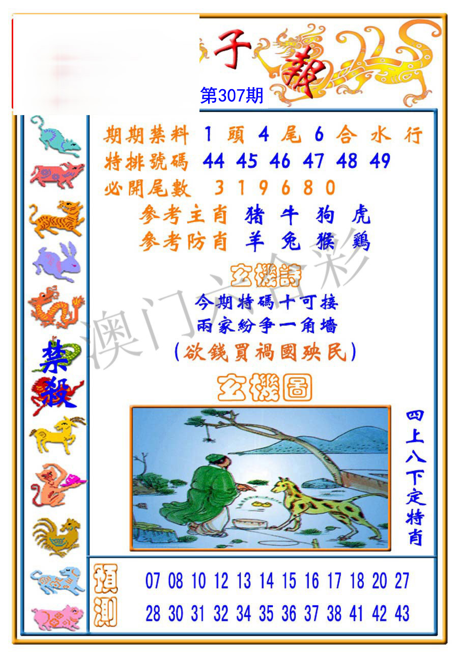 299期单双中特【家禽+鼠猴兔龙】狗44 |