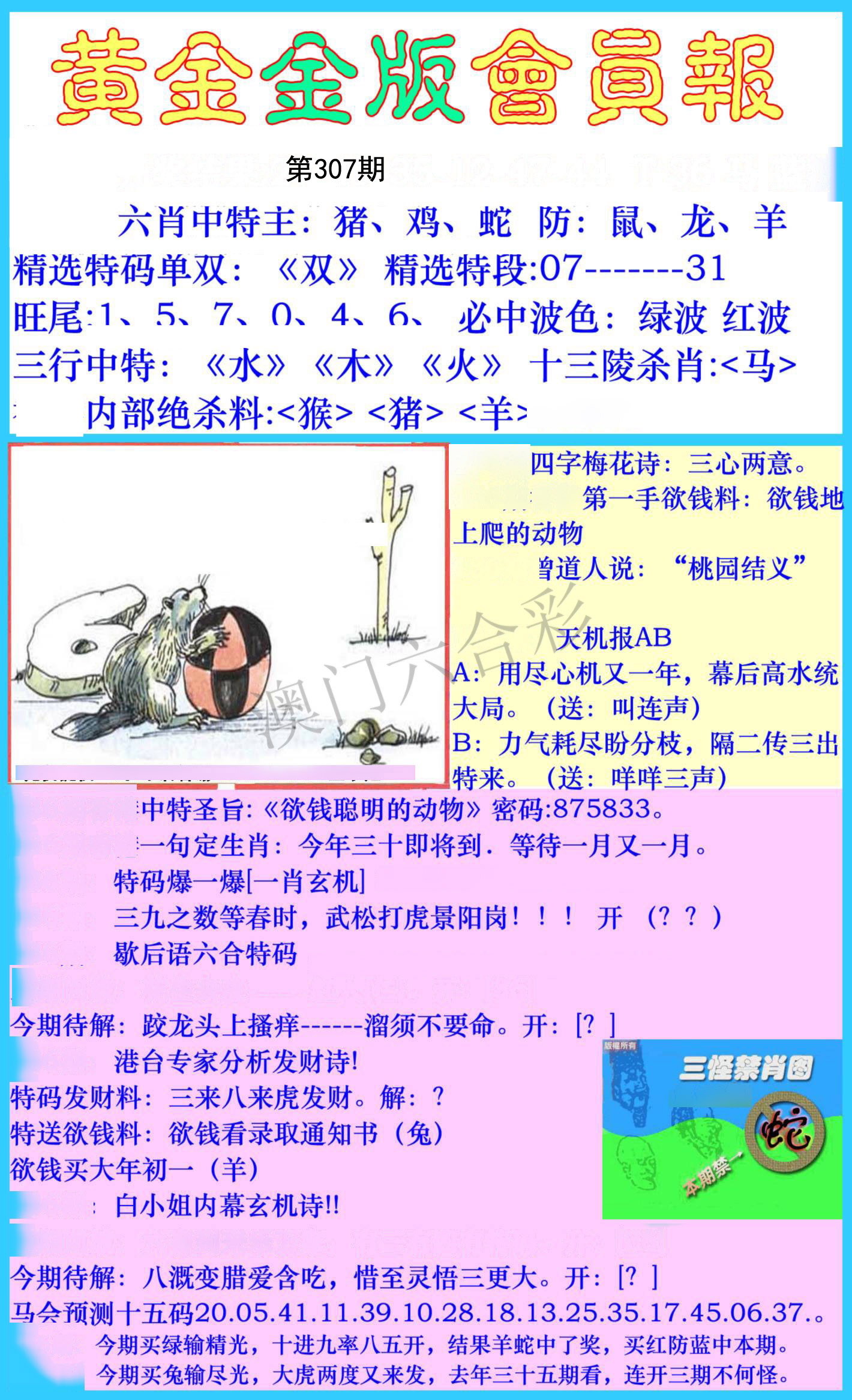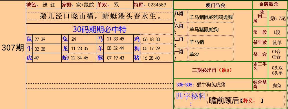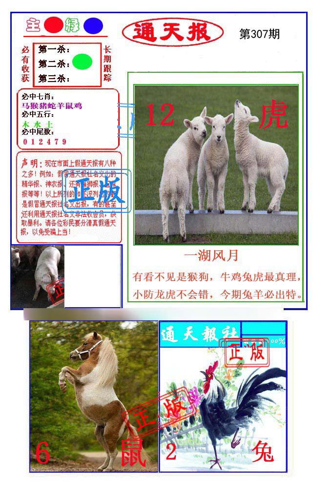 306期必中⑤肖: 牛猪鸡虎蛇 |