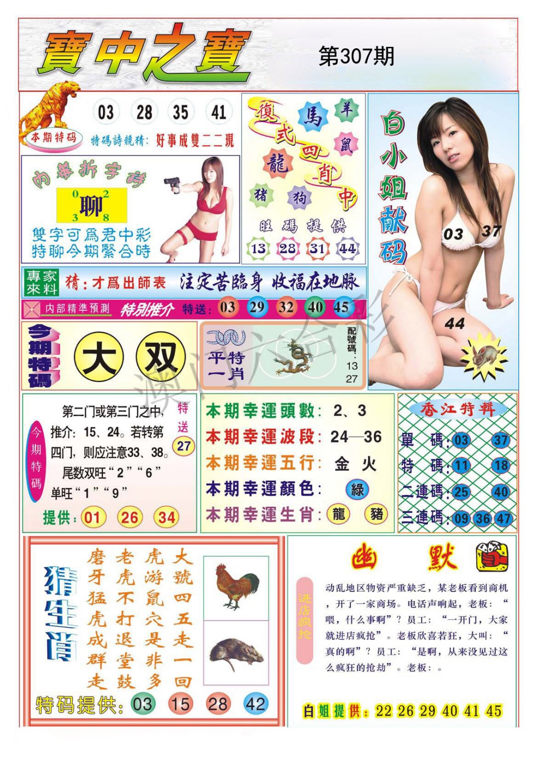 307期 太平洋的中间是什么??---答案:是平字 九肖:猪兔蛇马狗牛羊虎鼠 六肖:猪兔蛇马狗牛 三肖:猪兔蛇 10码:24 38 13 12 03 08 29 17 42 05 |