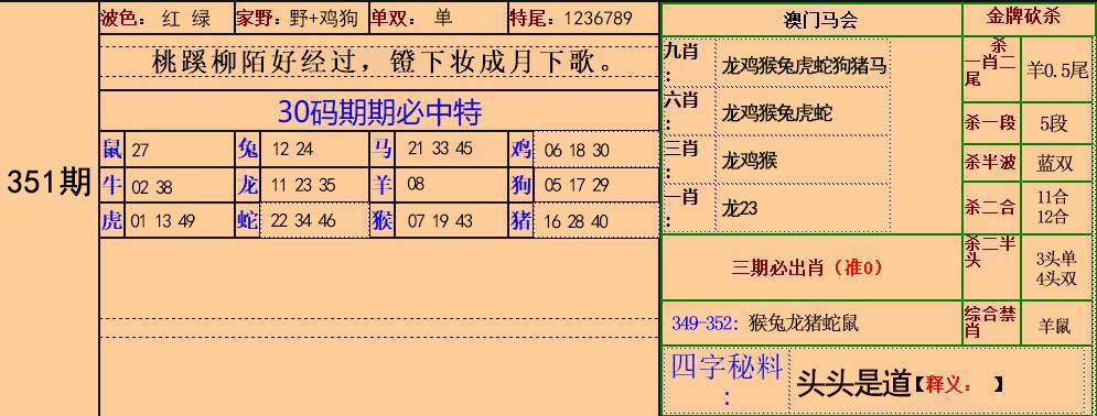 351期必中⑤肖: 鼠羊猴牛鸡 |