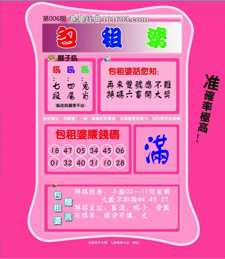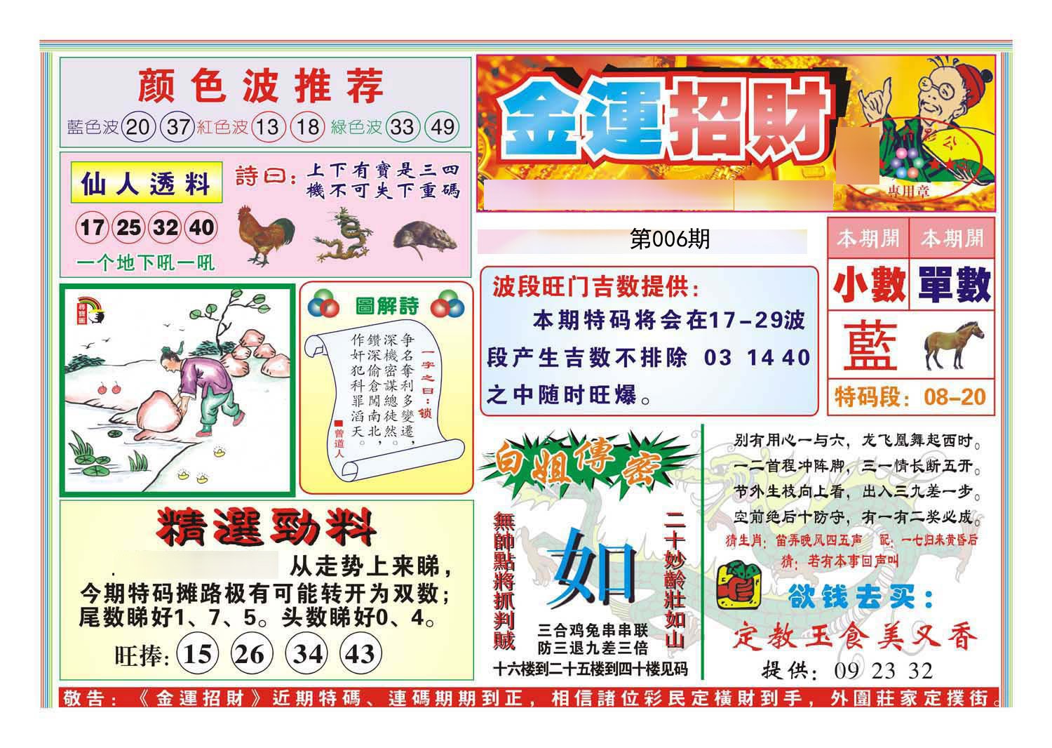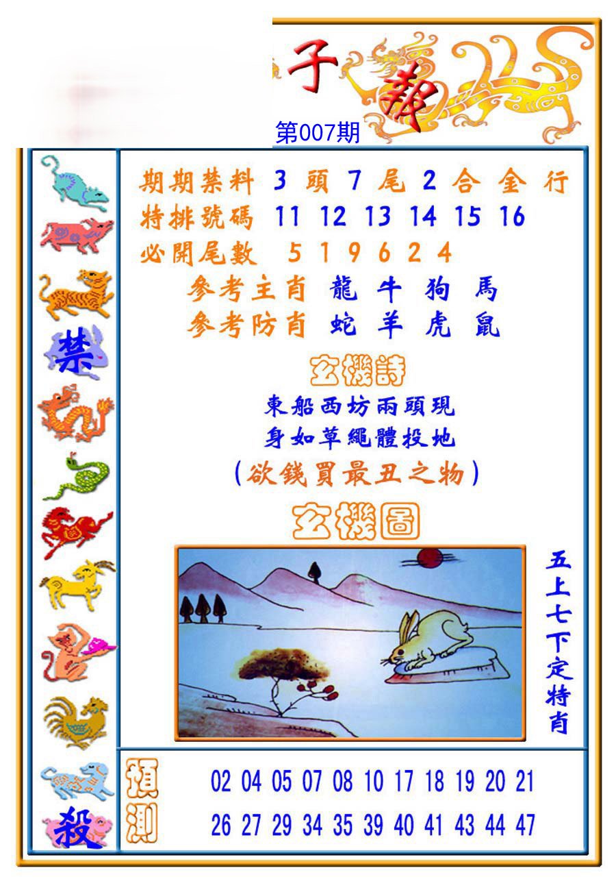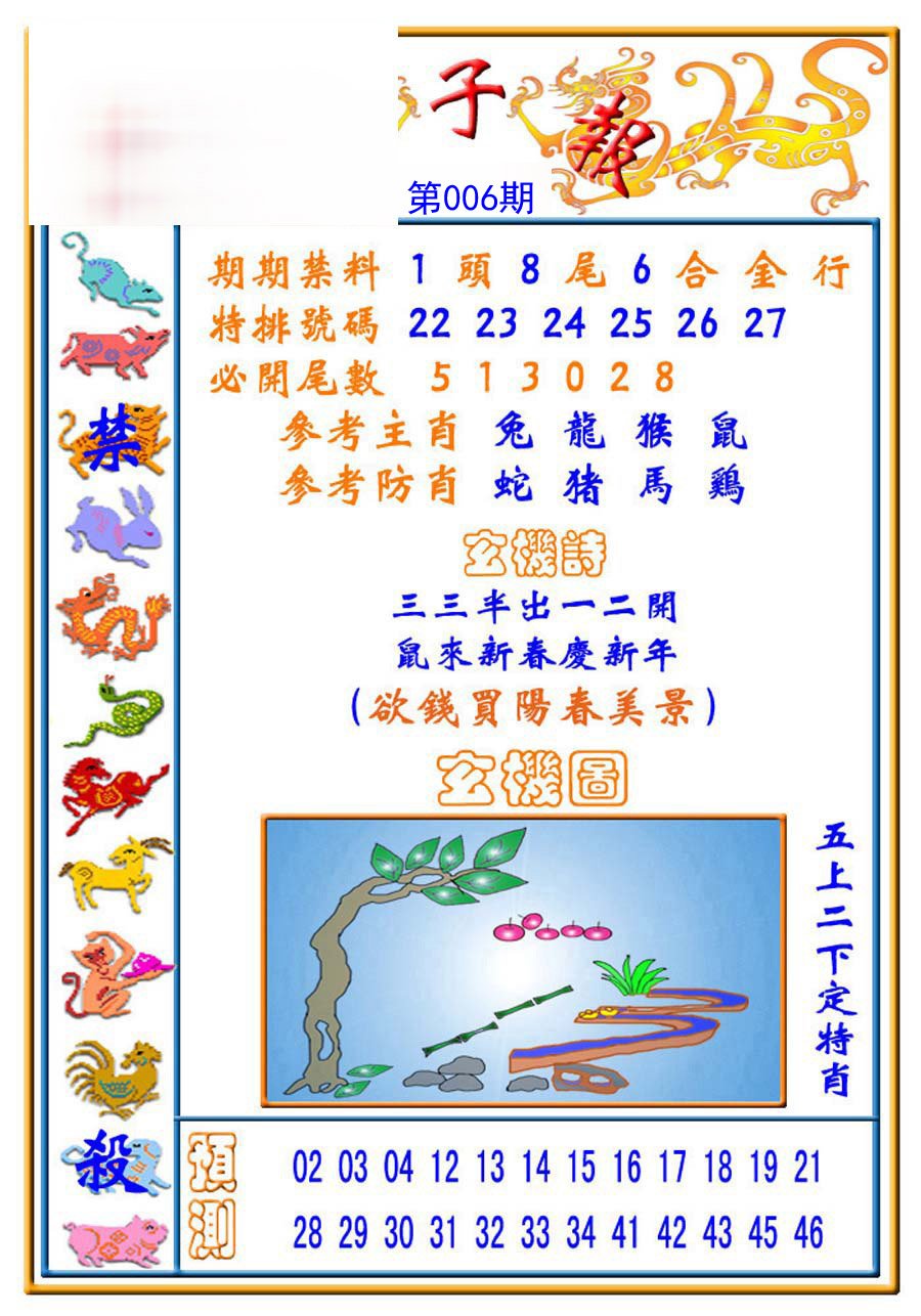 006期必中⑤肖: 虎羊狗兔鼠 |
