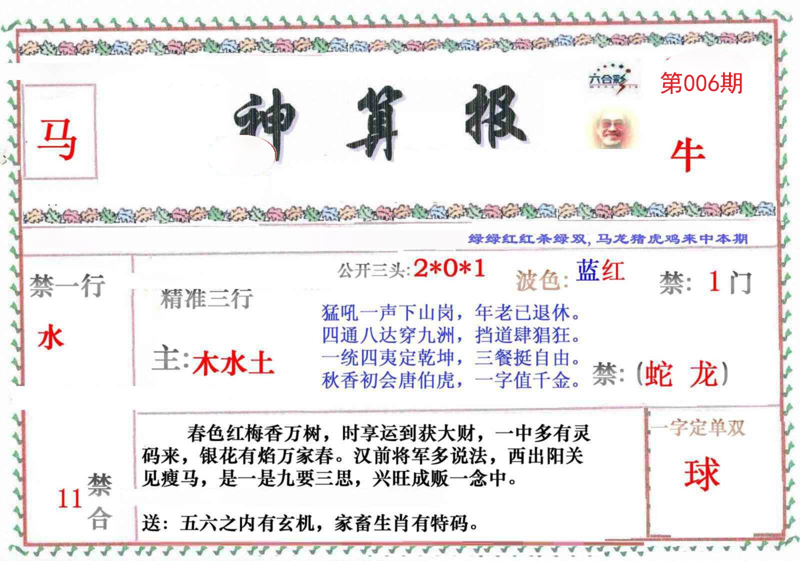 | 003期必中④肖: 牛龙马羊 |