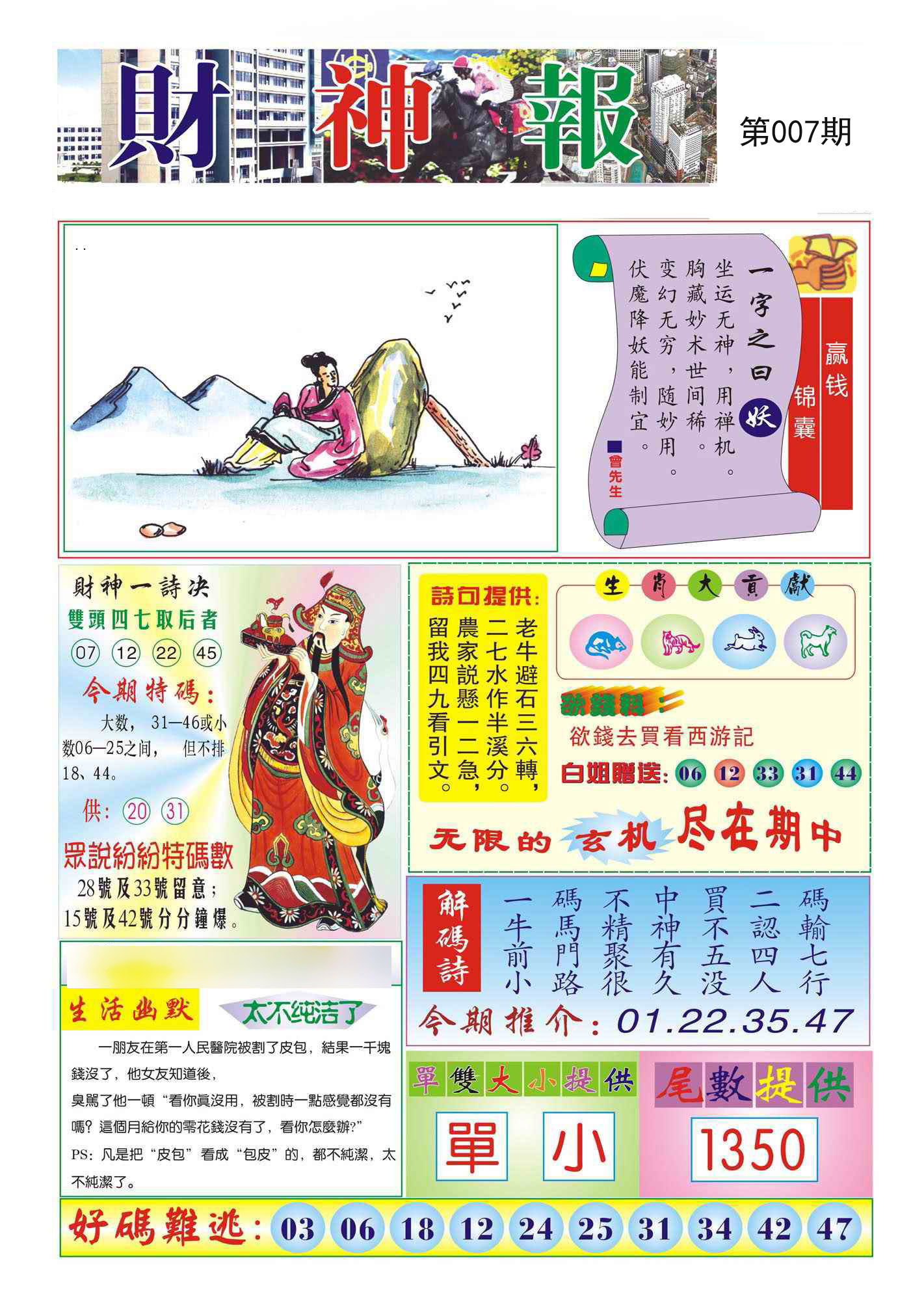 | 001期必中④肖: 猴鸡蛇兔 |