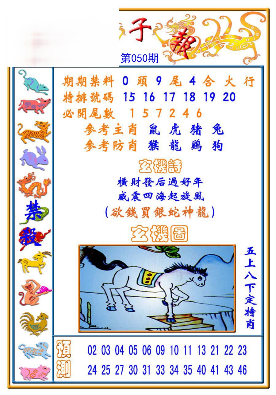 046期必中⑤肖: 鼠兔虎猪马 |