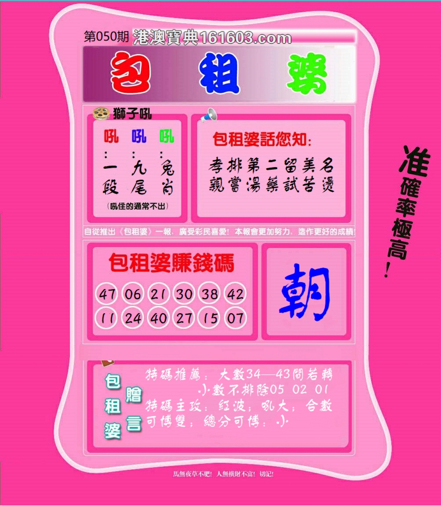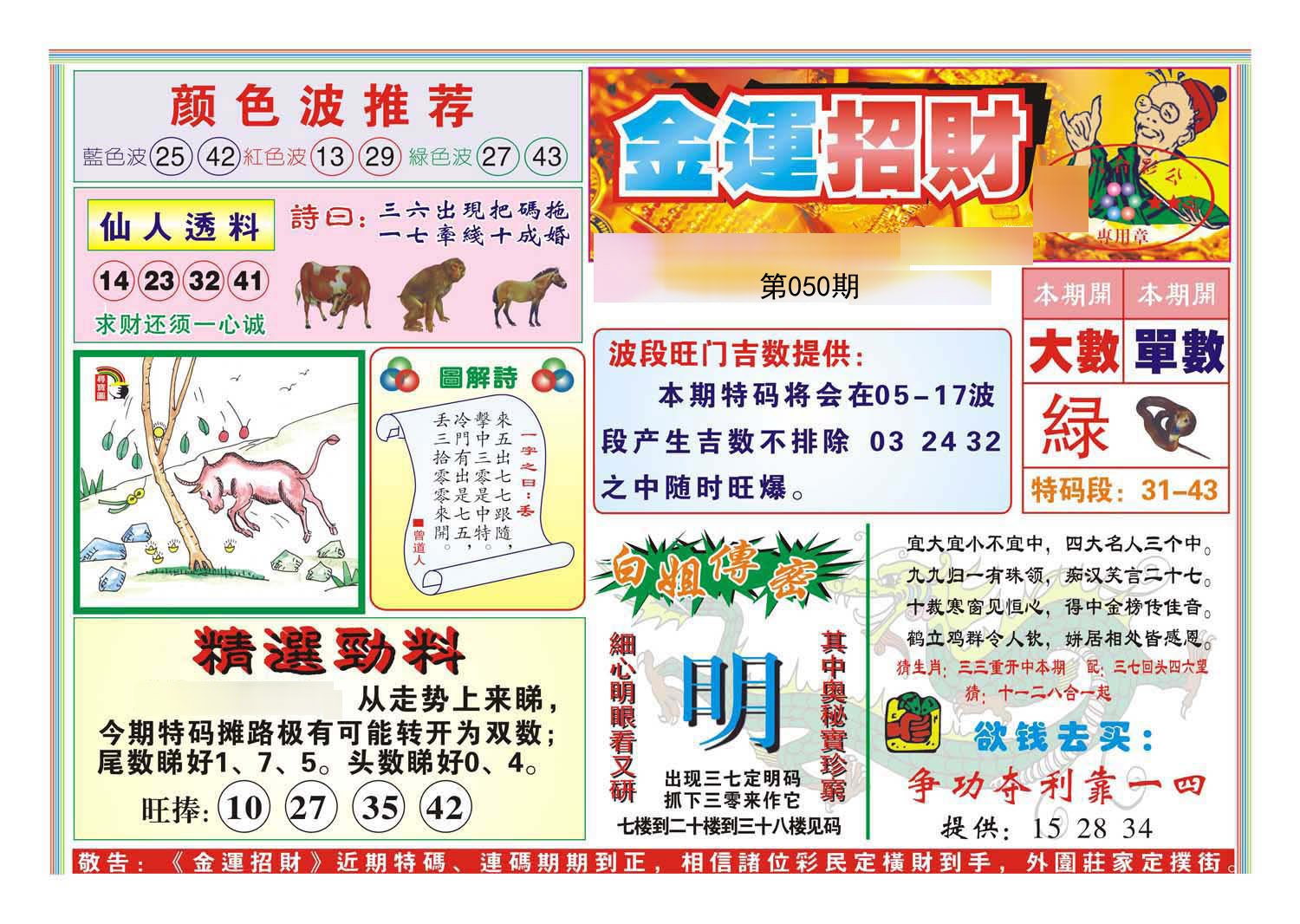 050期必中⑤肖: 虎猪狗马牛 |
