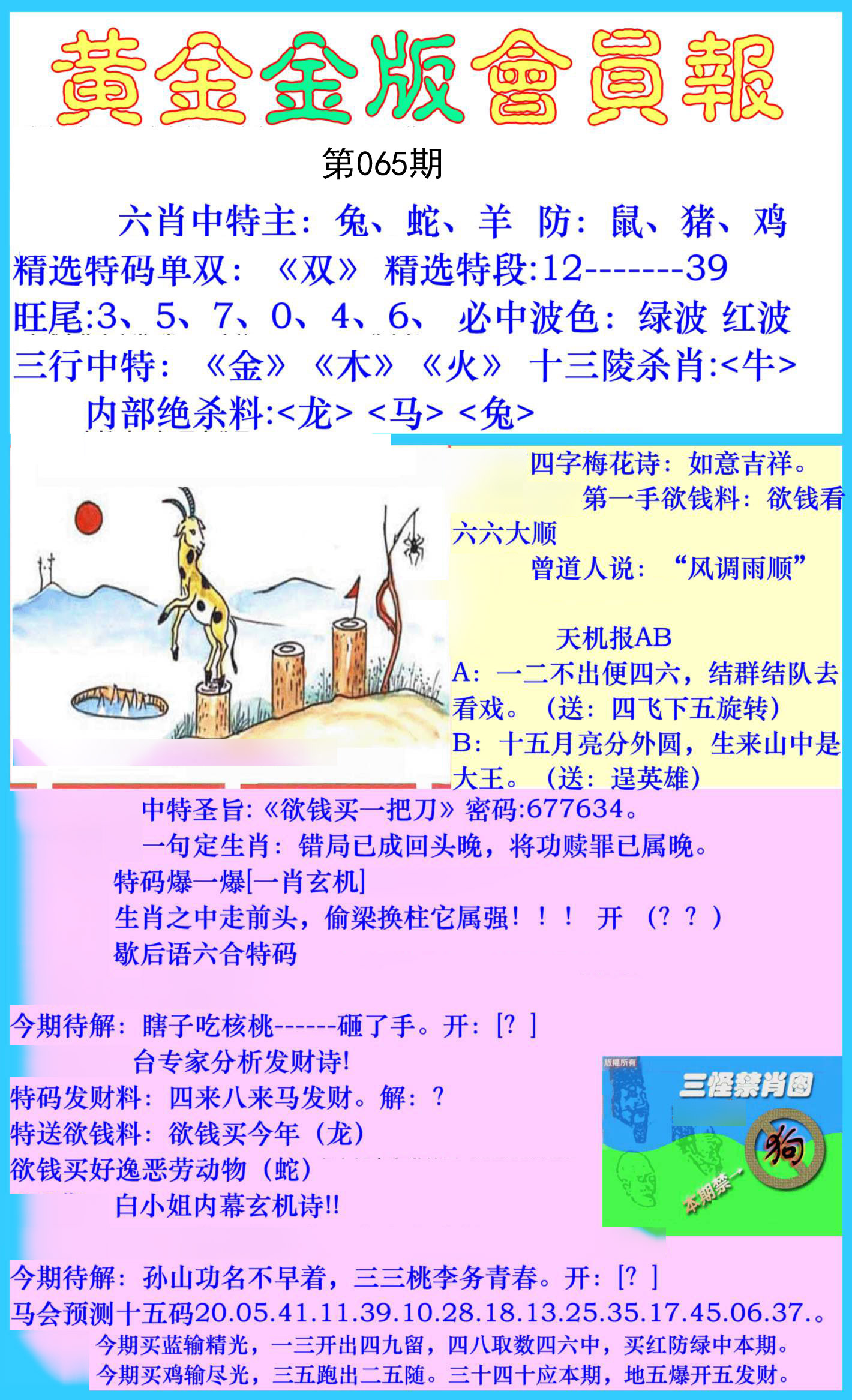 | 061期必中⑤码: 羊 |