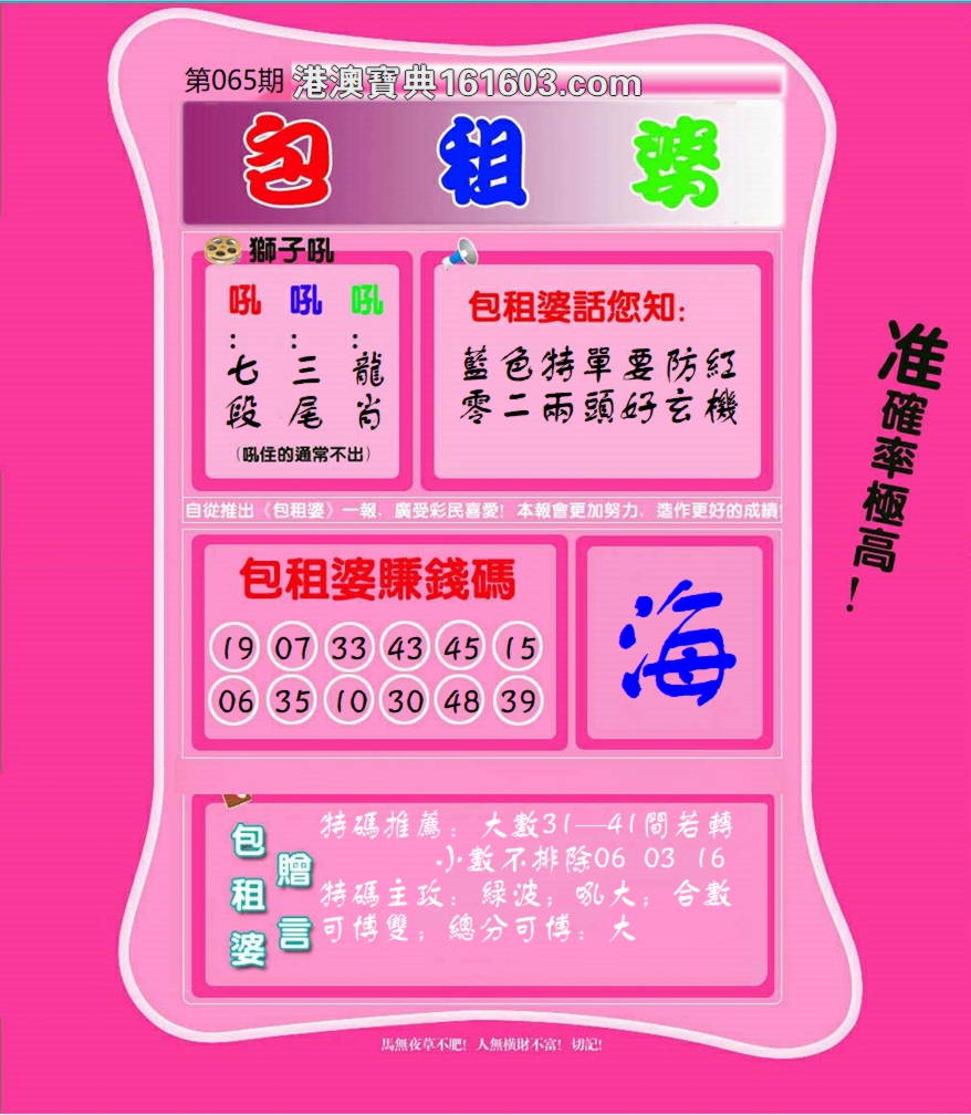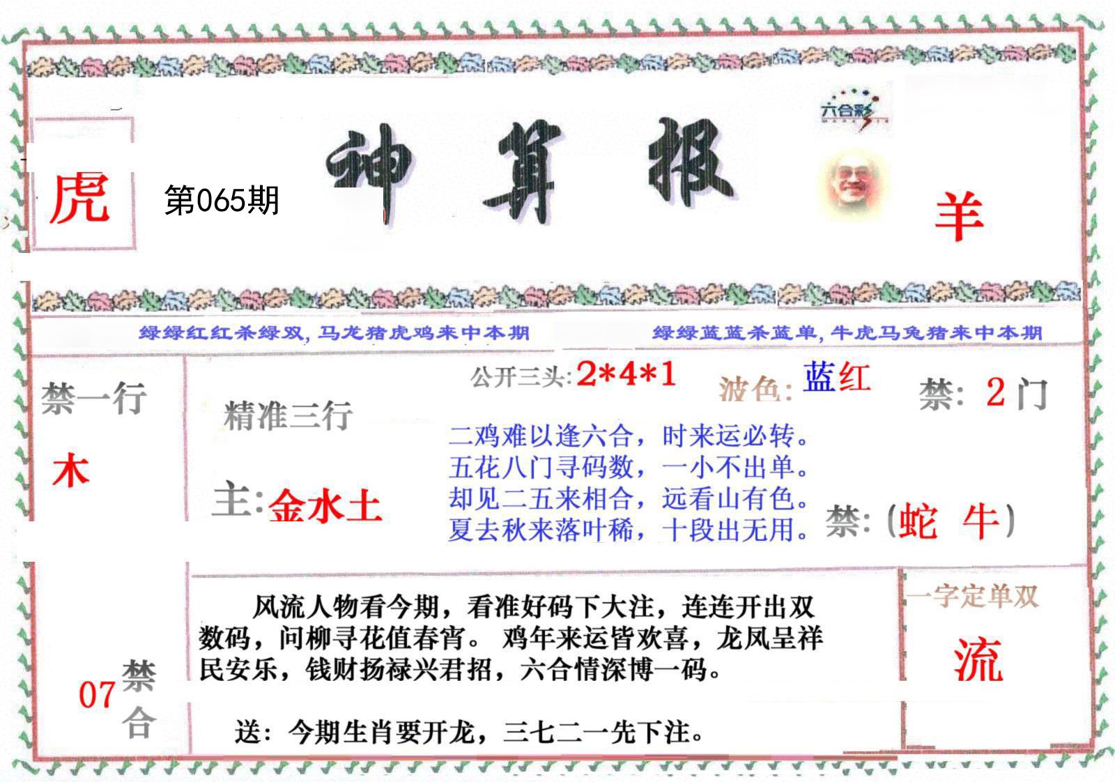 065期必中⑤肖: 猪蛇牛龙羊 |