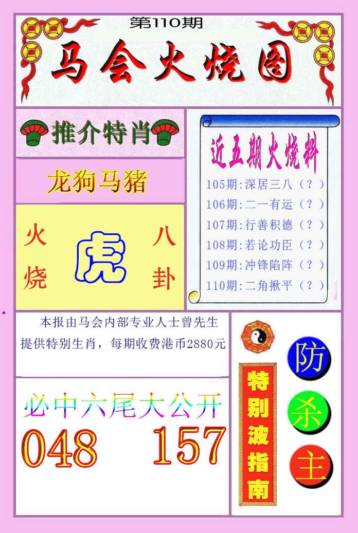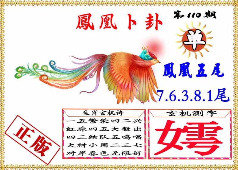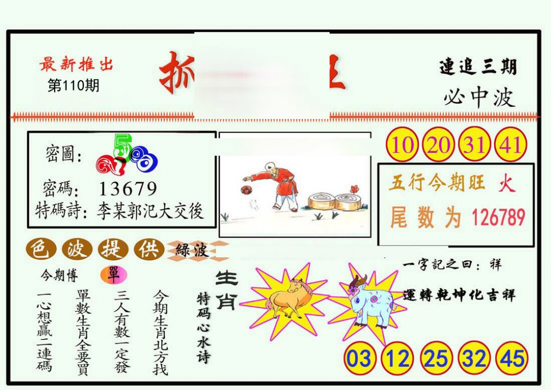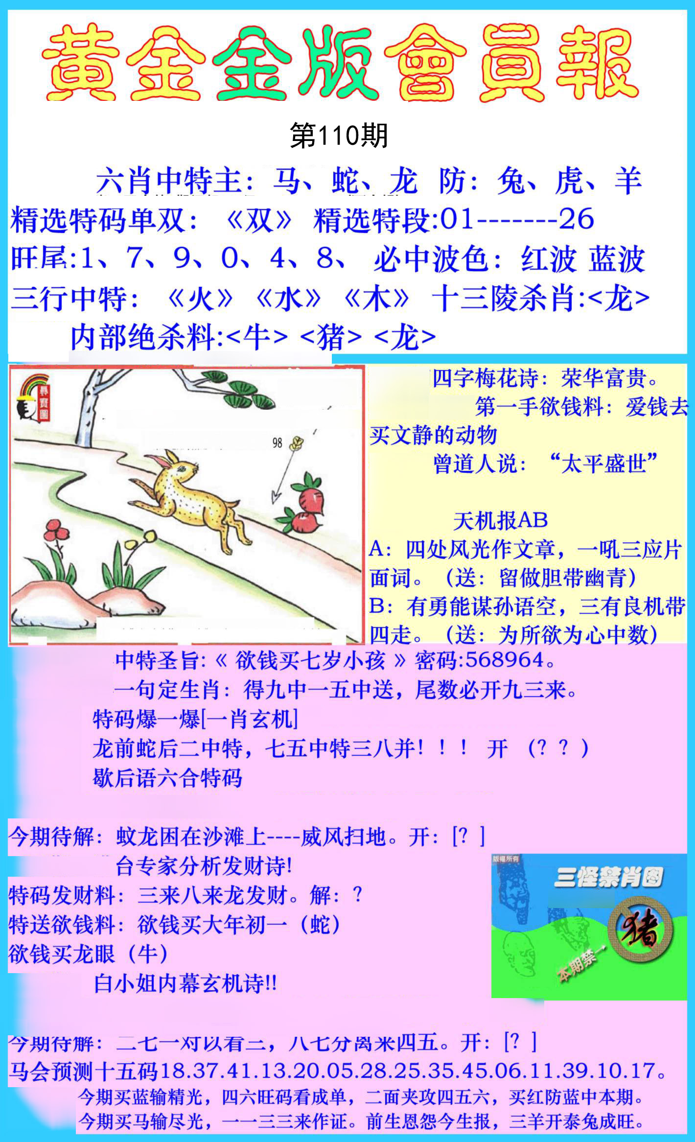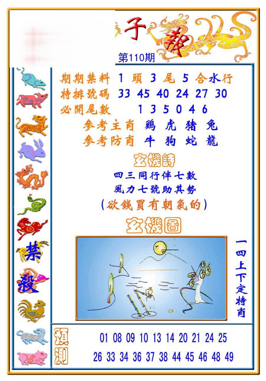 110期必中⑤肖: 蛇马牛猪鸡 |