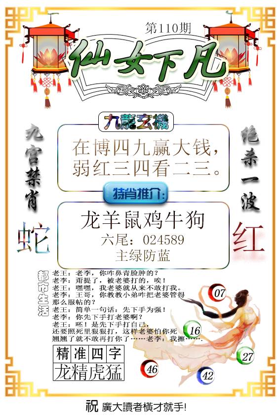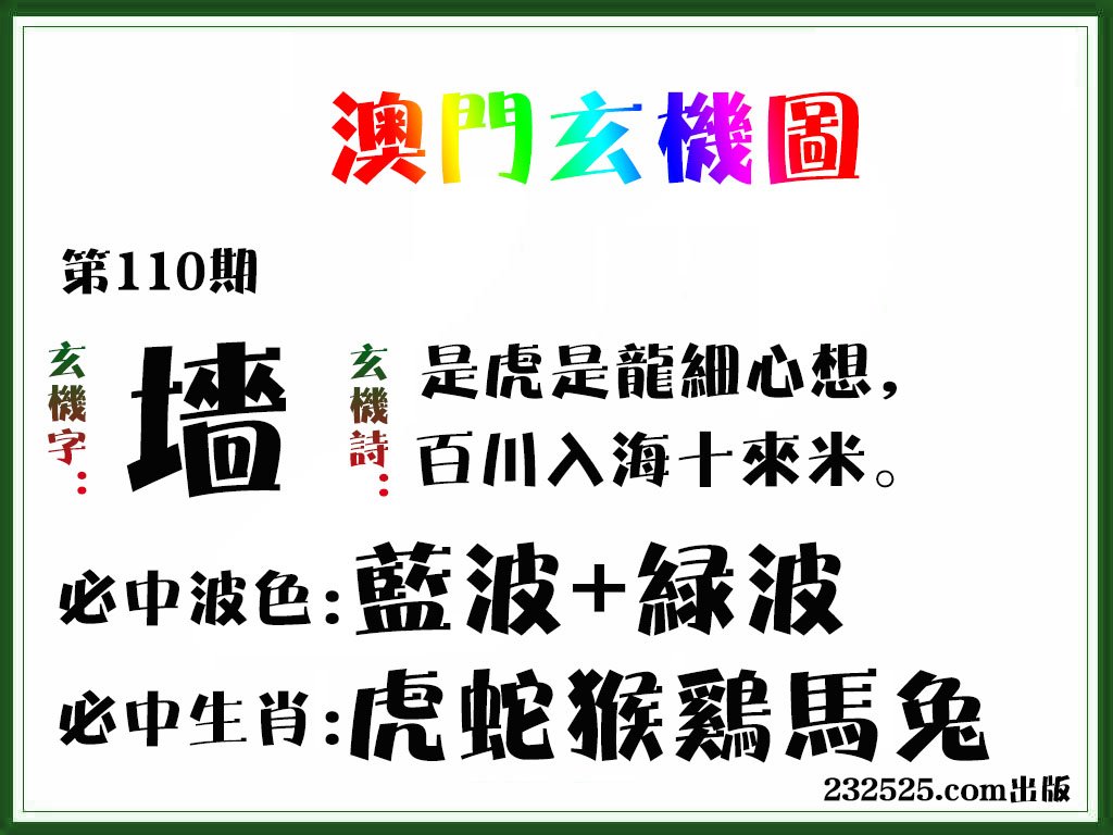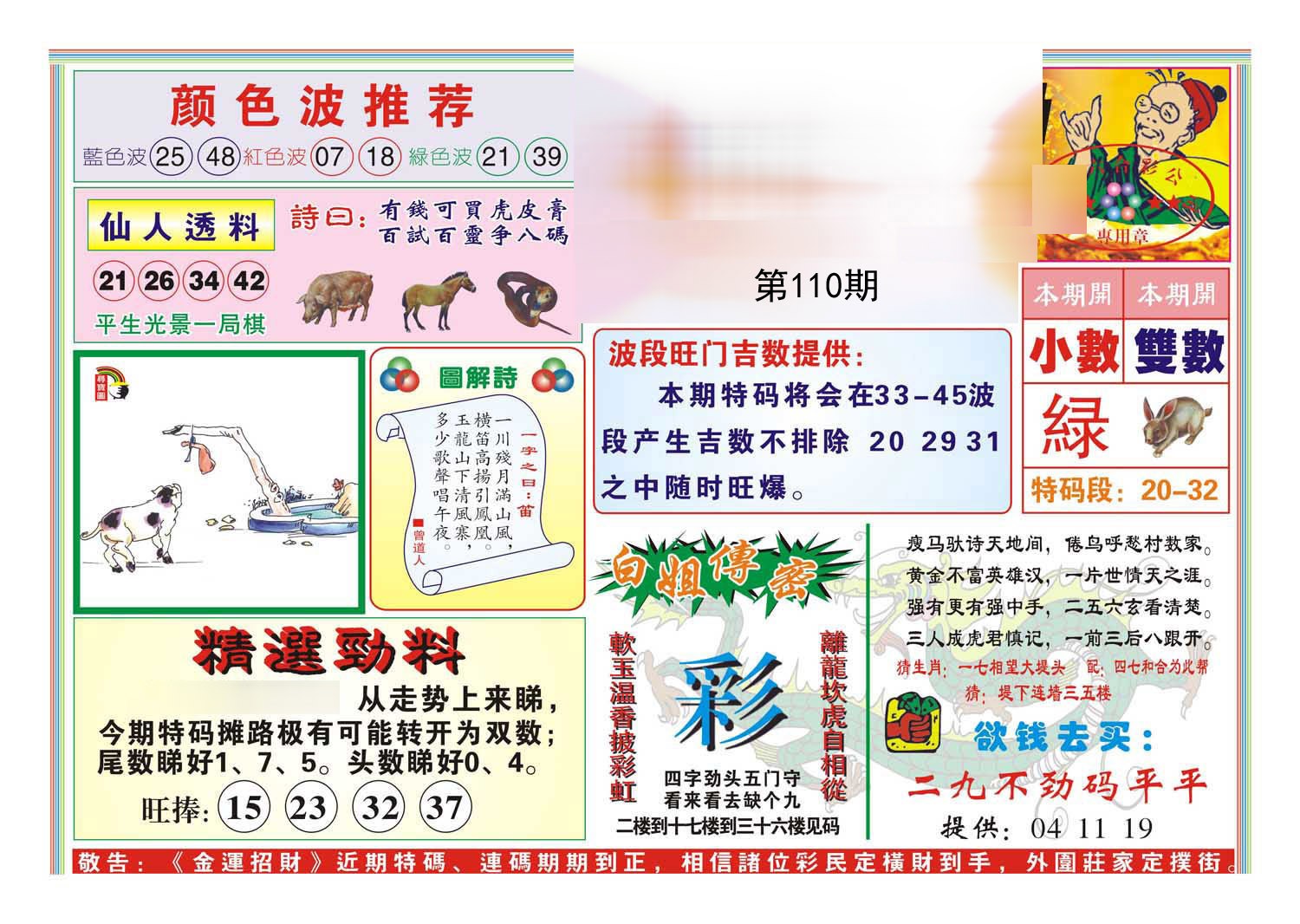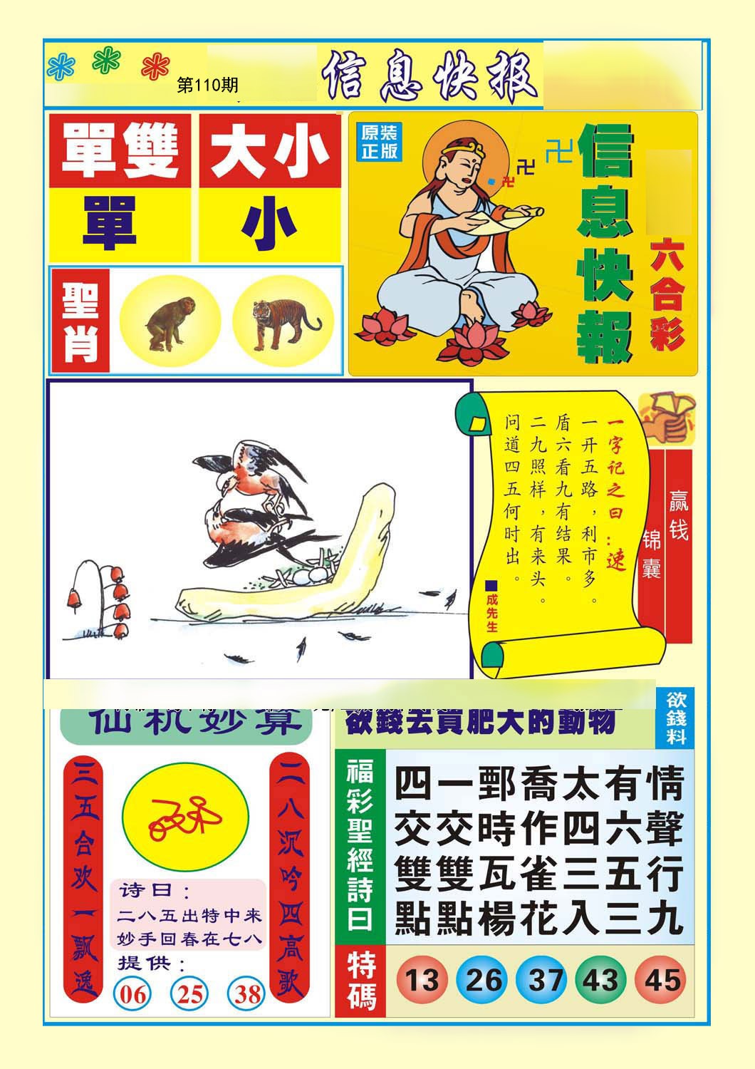 110期必中⑤肖: 蛇马牛猪鸡 |