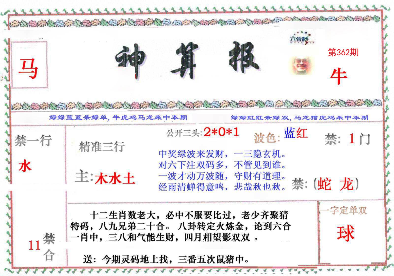 第362期绝杀半波【蓝单】开?00准 |