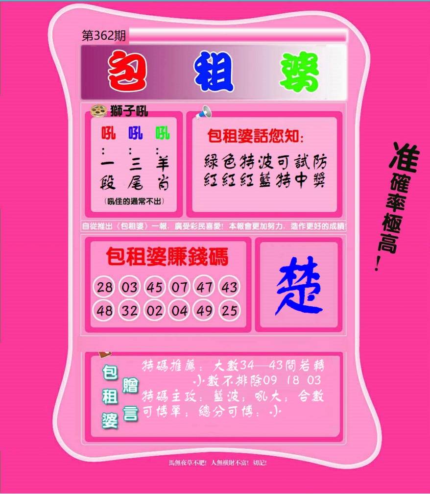 362期必中①肖: 狗 |