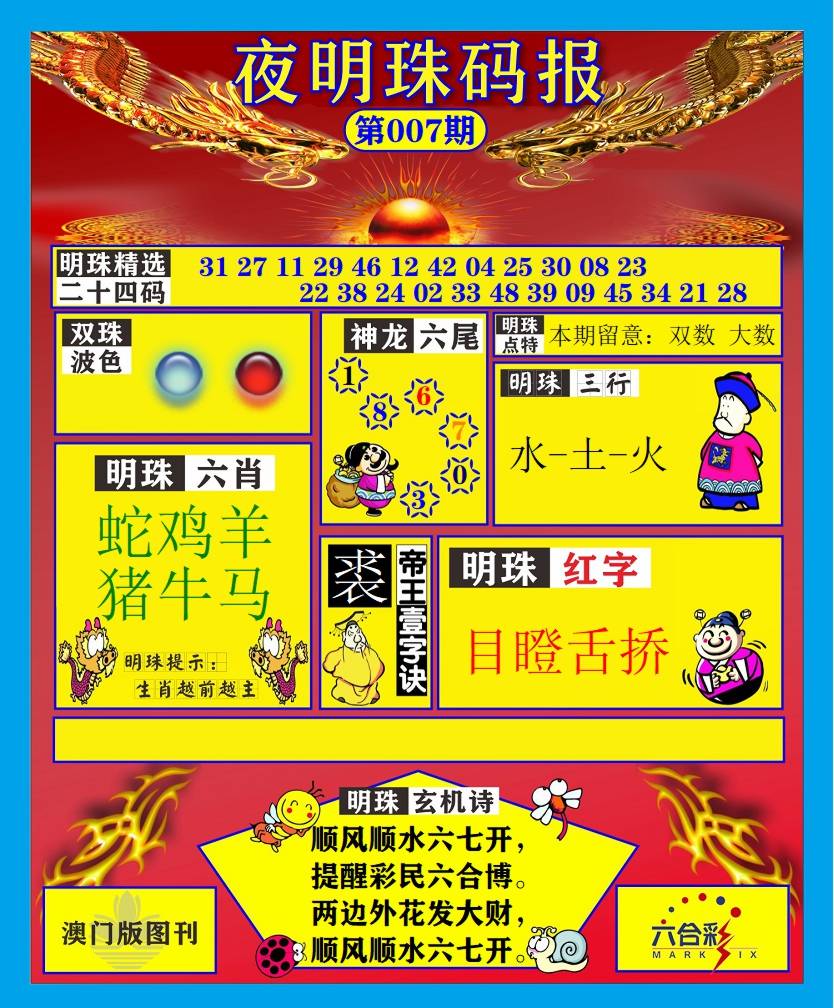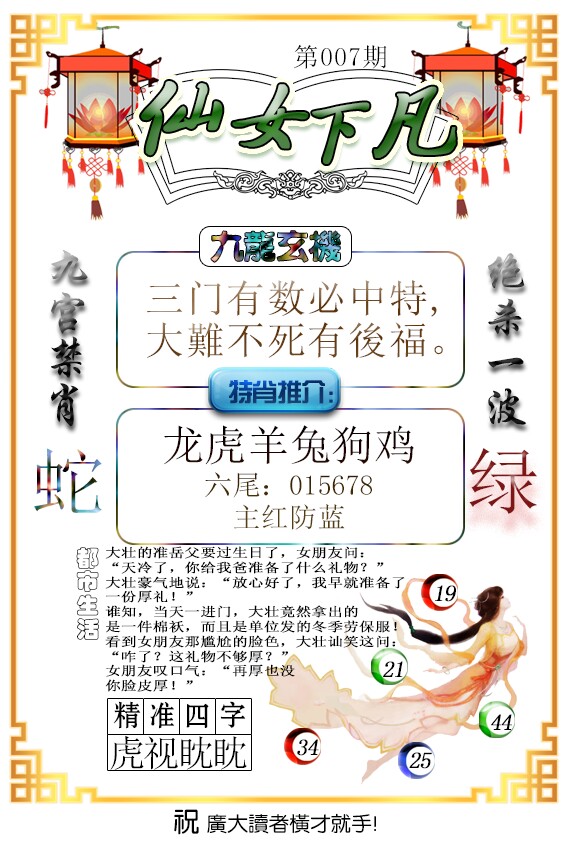 007期必中⑤肖: 蛇猴鸡羊狗 |