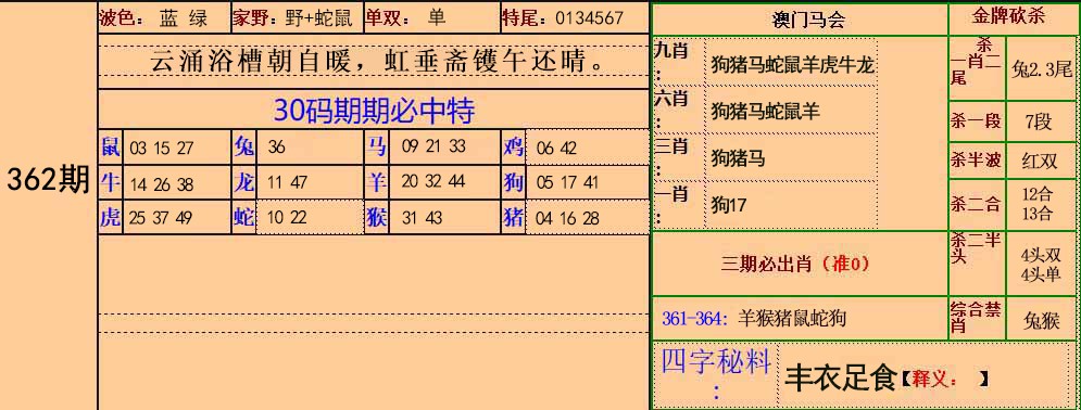 | 362期必中②肖: 狗马 |