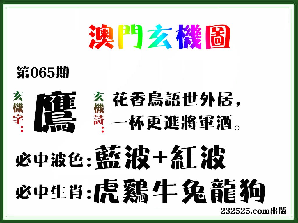 | 057期必中④肖: 兔蛇鸡虎 |